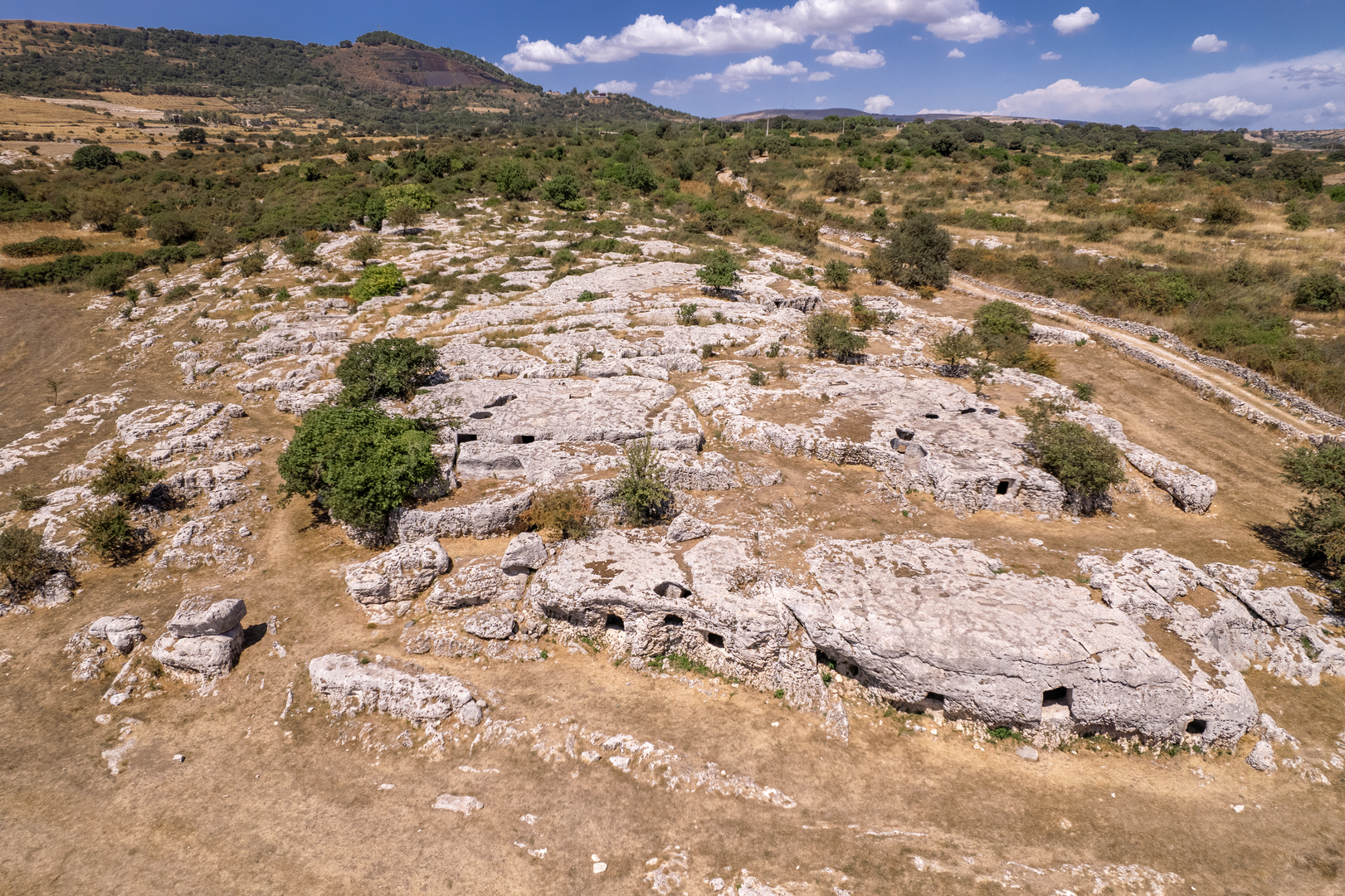 Il sito candidato comprende la necropoli di Moseddu (o Museddu), ubicata nella zona settentrionale del parco. Gran parte delle tombe è stata ricavata lungo i versanti meridionale e orientale di un basso bancone calcareo che svetta lievemente sulla pianura circostante, a una quota piuttosto omogenea; tuttavia sono presenti alcuni ipogei in posizione e orientamento anomalo: tra questi, la “Tomba della cava” (Tomba I), che si apre verso sud. La necropoli è formata da 18 ipogei, in gran parte con impianti planimetrici a proiezione orizzontale, nei quali sono presenti un padiglione e la cella principale, talvolta anche un corridoio d’ingresso. Più rari, invece, gli ipogei forniti di celle laterali. La Tomba XV ha una planimetria semplice, con breve dromos e padiglione che immette nell’interno dell’ipogeo. Questo presenta due ambienti suddivisi da un setto rialzato. Il portello, che si apre sul padiglione, è sormontato da un incavo, la cui funzione sembrerebbe quella di alloggiamento di una lastra orizzontale. L’ipogeo, infatti, è inserito nel gruppo di monumenti ipogeico-megalitici. La Tomba XVI, denominata “Sa Presone”, presenta un dromos di 4,80 m, un padiglione, una cella principale e una secondaria. Anche qui compare un incavo al di sopra del portello, ma solo sul lato sinistro; non è pertanto possibile ipotizzarne la funzione. Il portello immette nell’anticella semicircolare nella quale compare il focolare, reso a rilievo. Lungo le pareti è presente una zoccolatura in bassorilievo che prosegue sui lati fino a formare delle lesene. Nello stesso ambiente si apre una nicchia semicircolare il cui portello mostra una cornice con architrave in rilievo. Un altro portello con architrave in rilievo immette nel secondo ambiente, che ha subìto modifiche in età romana e una rifunzionalizzazione per attività vinaria.