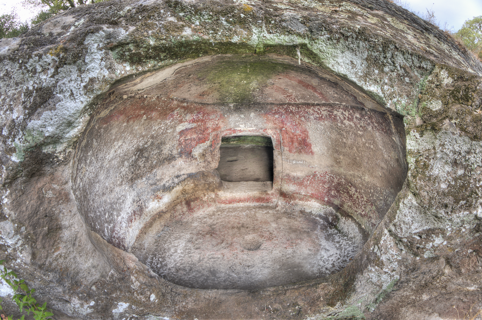 L’ipogeo è costituito da un breve atrio, un’anticella a, dalla cella b, al lato della quale si apre il vano c che, a sua volta, si articola in un ulteriore ambiente d. Dell’atrio residua parte del piano pavimentale; in prossimità dell’ingresso è visibile una canaletta trasversale. Attraverso un’apertura irregolare, determinata dall’abbattimento del portello, si accede all’anticella a di pianta semicircolare (1,27 x 0,86 m, alt.: 1,07 m). La parete è rettilinea all’ingresso e inclinata verso l’esterno, mentre le restanti pareti sono curvilinee. Il soffitto, concavo al centro, diviene convesso in prossimità del punto di tangenza con le pareti per la presenza di una scanalatura che, girando lungo la parete, segna l’origine del soffitto. Il pavimento, piano e uniformemente dipinto di rosso, presenta al centro una fossetta votiva. Sulla parete di fondo si apre il portello d’accesso alla cella b, che ha pianta sub-ellittica (2,22 x 1,60 m, alt.: 1,24 m); la fossetta quadrangolare contornata da un solco inciso al centro del pavimento, a sua volta anche stavolta dipinto di rosso, può essere interpretata come la semplificazione di un focolare rituale (0,17 x 0,18 m, prof: 5 cm).