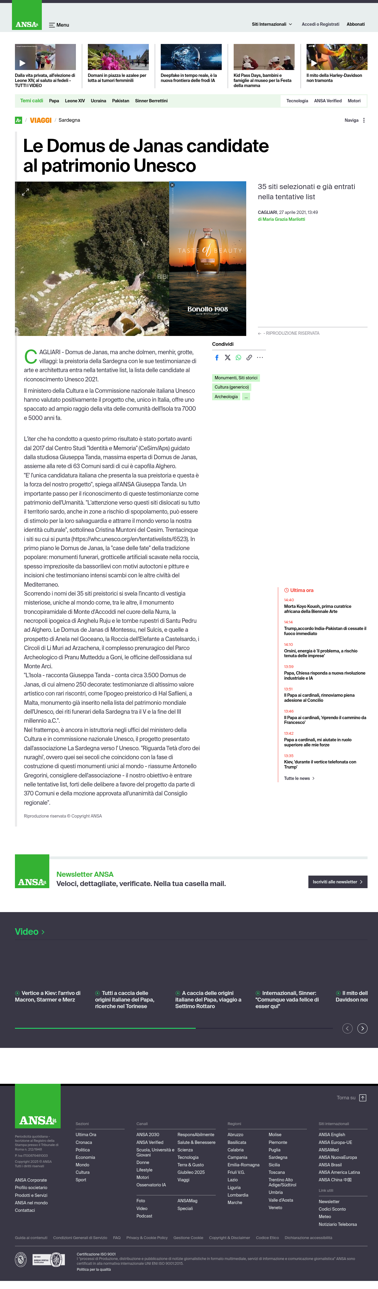 ANSA.it riporta la candidatura delle Domus de Janas al patrimonio dell'UNESCO.