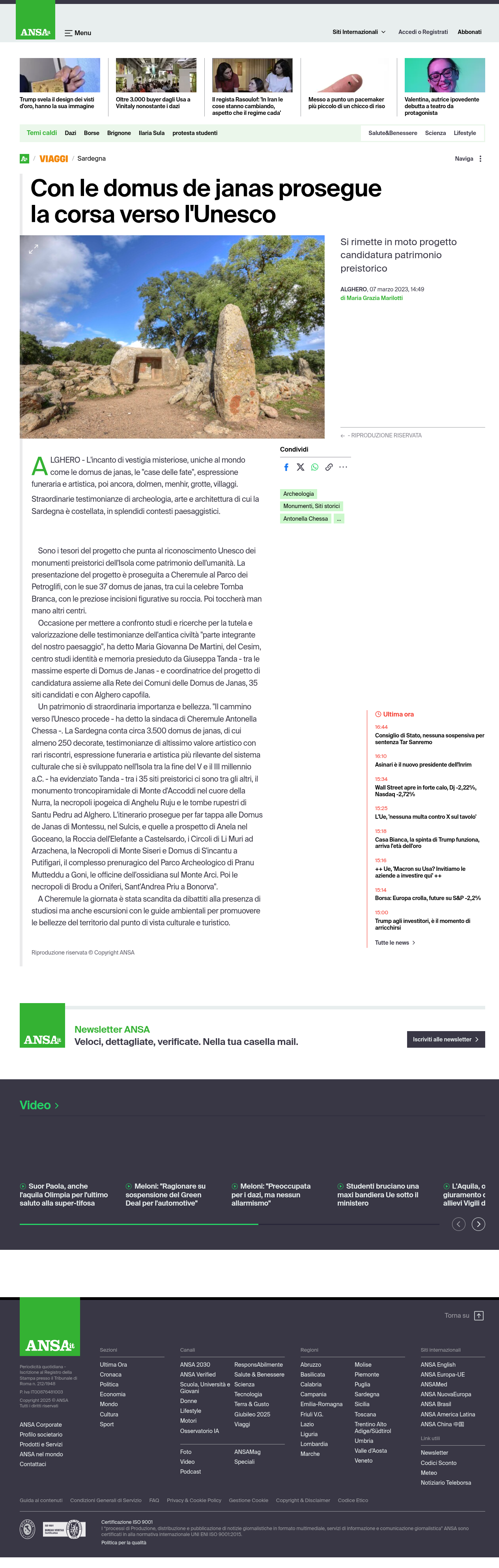 ANSA racconta un nuovo passo del progetto di candidatura Unesco dei monumenti preistorici della Sardegna, con una tappa a Cheremule per valorizzare le Domus de Janas e altri monumenti archeologici.