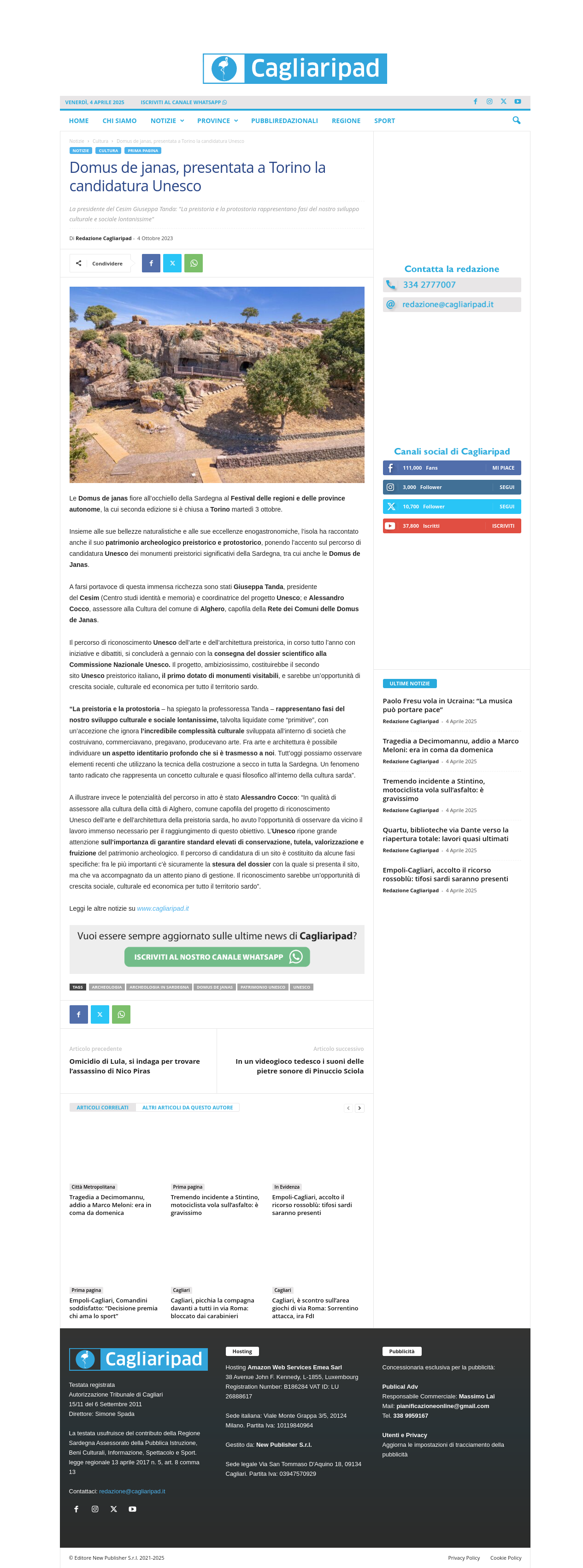 Il sito Cagliaripad racconta la presentazione a Torino della candidatura Unesco per le Domus de Janas, patrimonio archeologico preistorico della Sardegna.