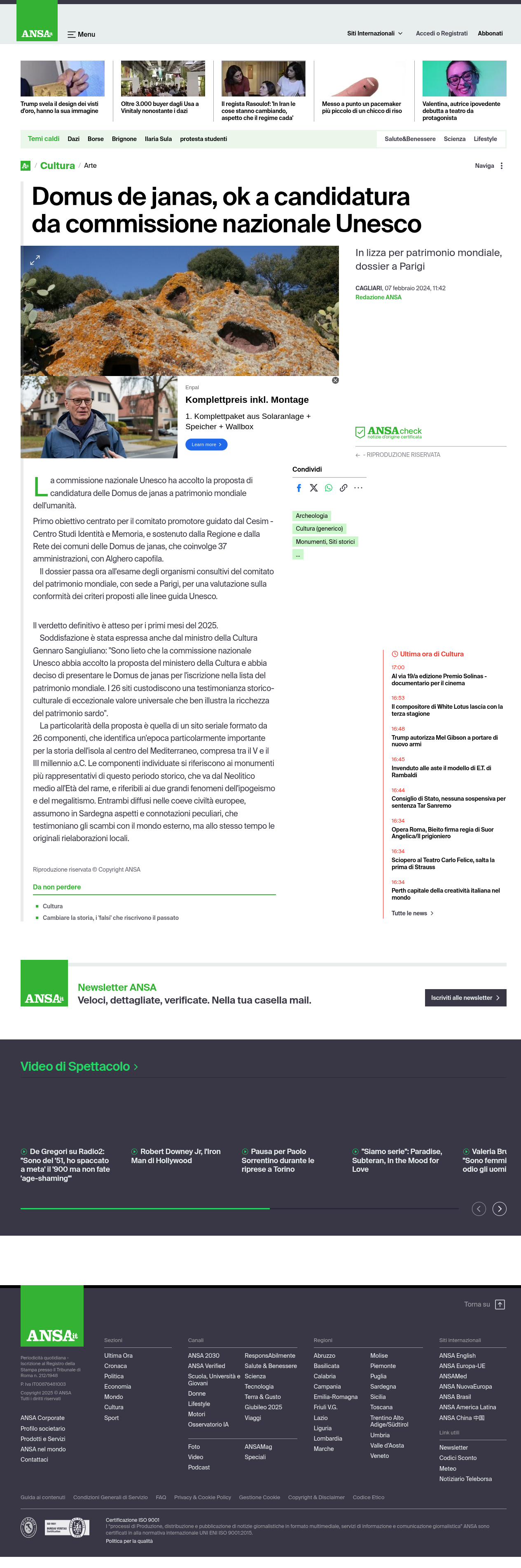 L’articolo illustra i prossimi passi del percorso, con l’invio del dossier agli organismi consultivi del Comitato del patrimonio mondiale a Parigi, e sottolinea l’eccezionalità del sito seriale composto da 26 monumenti che rappresentano in modo peculiare la preistoria sarda tra Neolitico e Età del rame.