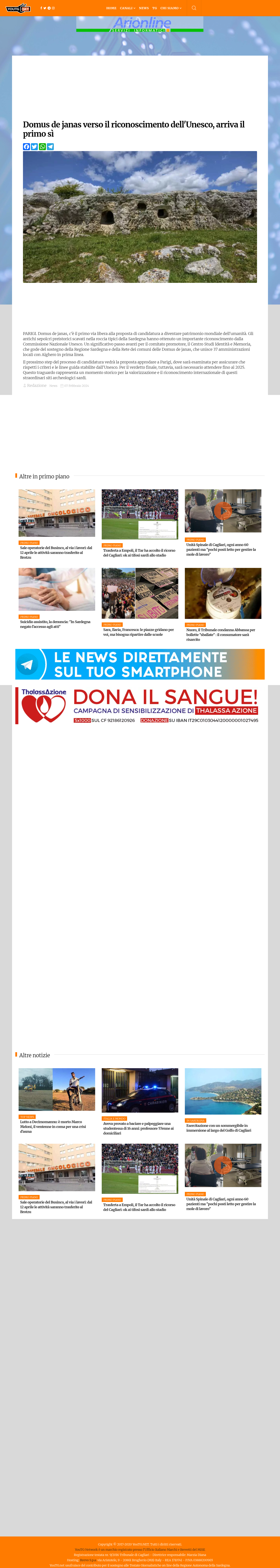 YouTG.net comnunica che la Commissione Nazionale Unesco approva la candidatura delle Domus de janas come patrimonio mondiale dell'umanità, con il sostegno di enti locali e regionali.
