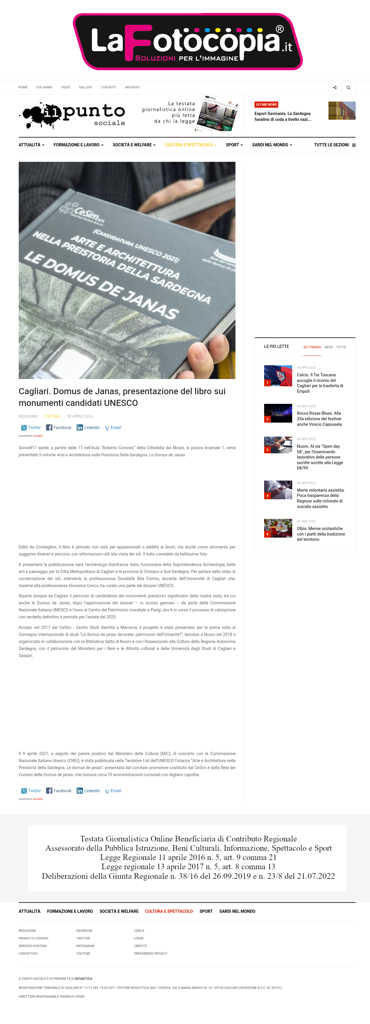 IlPuntoSociale.it presenta la pubblicazione del volume "Arte e Architettura nella Preistoria della Sardegna. Le Domus de Janas", collegato al progetto di candidatura UNESCO.