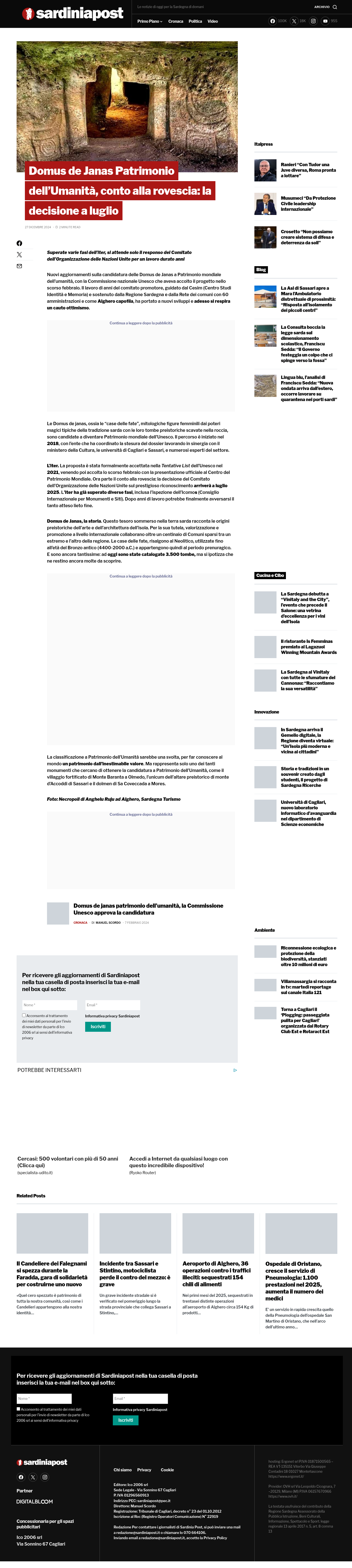 SardiniaPost aggiorna sul percorso della candidatura Unesco delle Domus de Janas, in attesa del responso finale previsto per luglio 2025.