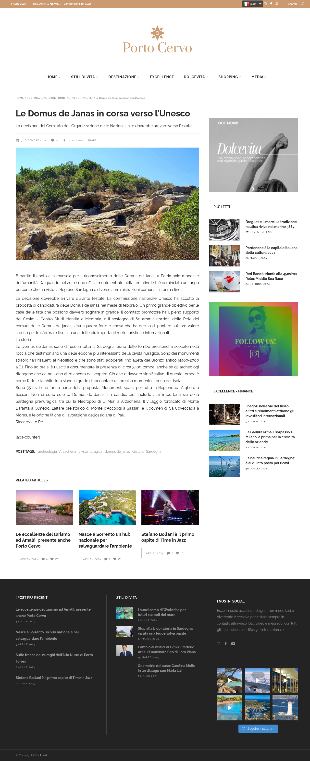 L’articolo ripercorre la storia delle Domus e inserisce la candidatura in un contesto più ampio che include altri importanti siti prenuragici della Sardegna, mostrando l’ambizione dell’isola di affermarsi come meta culturale internazionale.