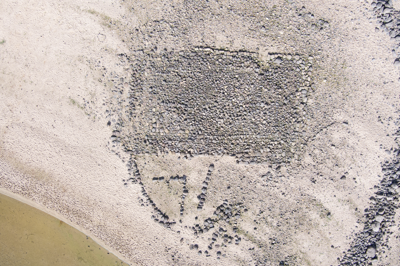 Presso i limiti orientali dell’insediamento si individua una zona che ha subito l’asportazione di un consistente spessore di deposito archeologico a causa dello sfruttamento come cava di sabbia. Nelle sezioni create dall’intervento dei mezzi meccanici si distingue qualche zona di terreno di colorazione più scura, grigio cenere, e con un cospicuo numero di materiali affioranti, tra cui ossidiana, frammenti ceramici, piccoli resti ossei e qualche conchiglia. Non si intravedono strutture litiche anche se qualche piccola sacca presenta alla base una serie di pietre piatte e ciottoli di medie dimensioni.