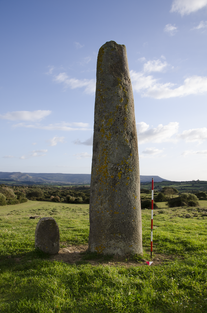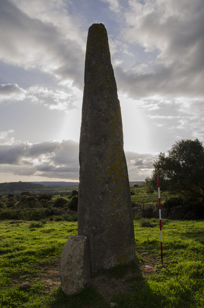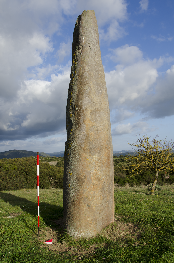 Il menhir, in trachite, è ubicato su un colle in prossimità della necropoli a domus de janas di Is Forrus e del villaggio preistorico di Genna Storti. Si tratta di un monolite slanciato (alt. 5,75 m, circonferenza alla base: 3,27 m), caratterizzato da una sezione semicircolare, con faccia prospettica spianata rivolta a sud, sulla quale si individuano tre coppelle circolari. La superficie è ben rifinita e lavorata a martellina; la parte sommitale, spezzata, è collocata in prossimità della base. Sulla base dell’analisi tipologica e della bibliografia esistente, la realizzazione del menhir viene attribuita alla fine del V-terzo quarto del III millennio a.C. (4100-2300 cal. BC). Si suppone che i menhir fossero percepiti come sede di una forza soprannaturale, un essere divino o antenati “eroizzati”. Un’altra teoria riconosce, nell’ambito di un’economia prevalentemente agricola delle popolazioni neolitiche ed eneolitiche, un’associazione tra il menhir-fecondatore e la terra-fecondata. Nella terra si personalizzerebbe la dea Madre che fa germogliare i vegetali dai quali l’uomo trae il suo sostentamento. Nel menhir, invece, si rievocherebbe l’organo sessuale maschile che, congiuntosi alla terra, con i suoi misteriosi poteri la feconda: si compie in questo modo il ciclo umano e vegetativo. Un’ulteriore ipotesi ritiene possibile che i menhir venissero utilizzati per segnare e sacralizzare aree particolarmente importanti: nei villaggi potevano indicare il luogo sacro presso la comunità o antiche vie di transito; nei pressi delle tombe potevano rivestire non solo una funzione protettiva, ma anche il compito di indicatori del luogo funerario.